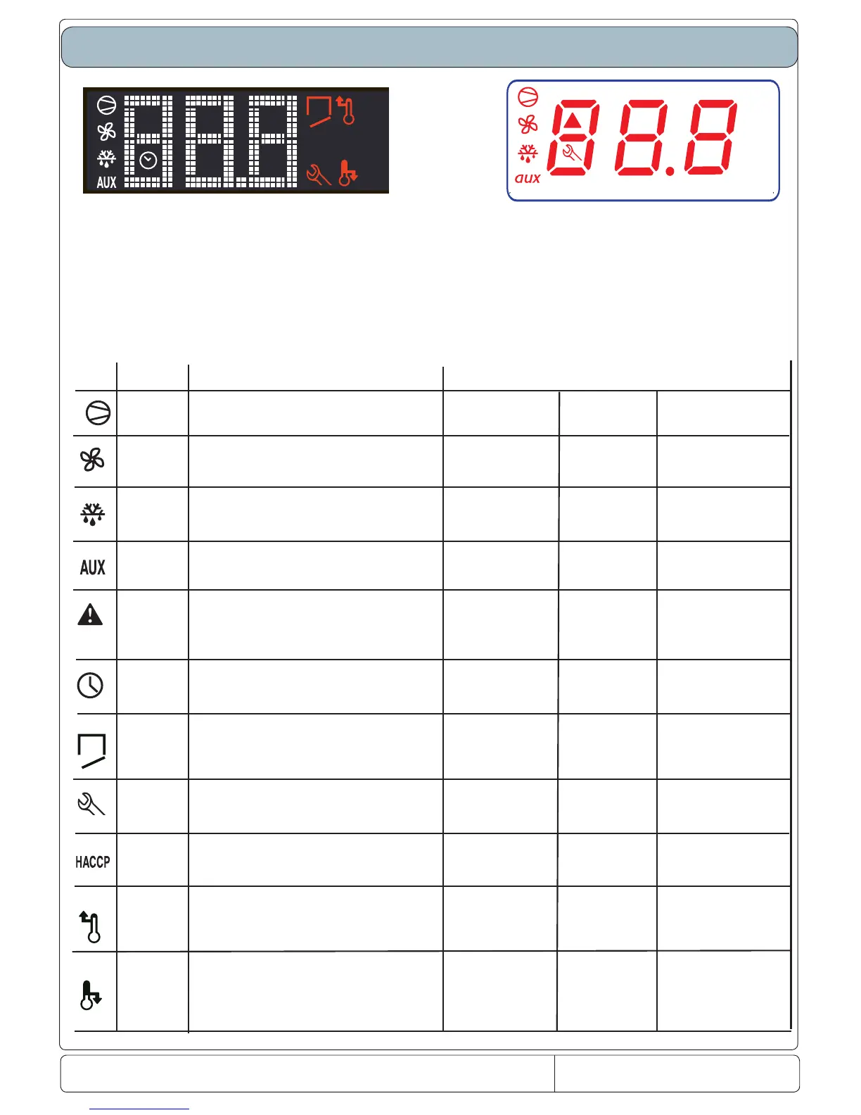 HACCP alarms stored (HA and/or HF alarm shown on the display)