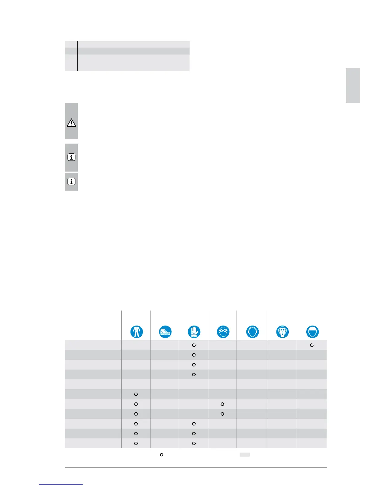 Key: PPE required; PPE available or to be used if necessary; PPE not required.