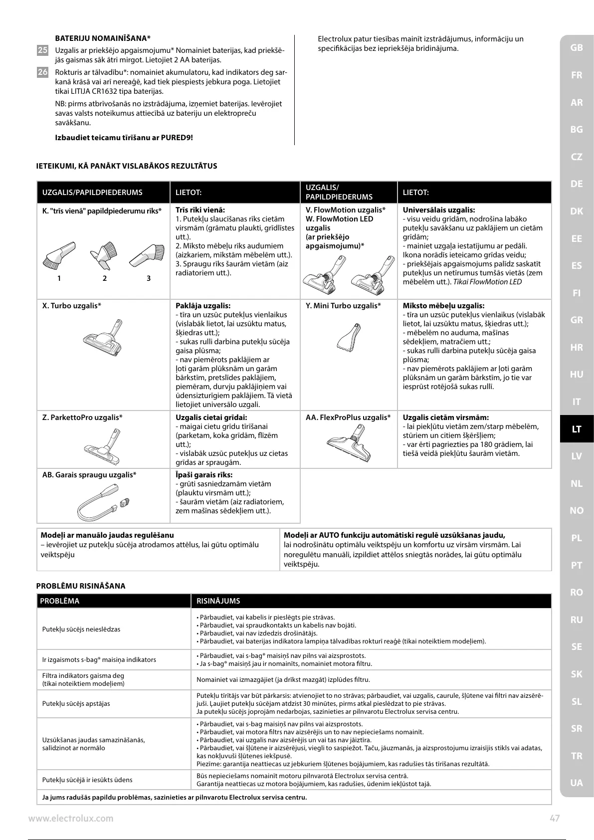 Ja putekļu sūcējs joprojām nedarbojas, sazinieties ar pilnvarotu Electrolux servisa centru.