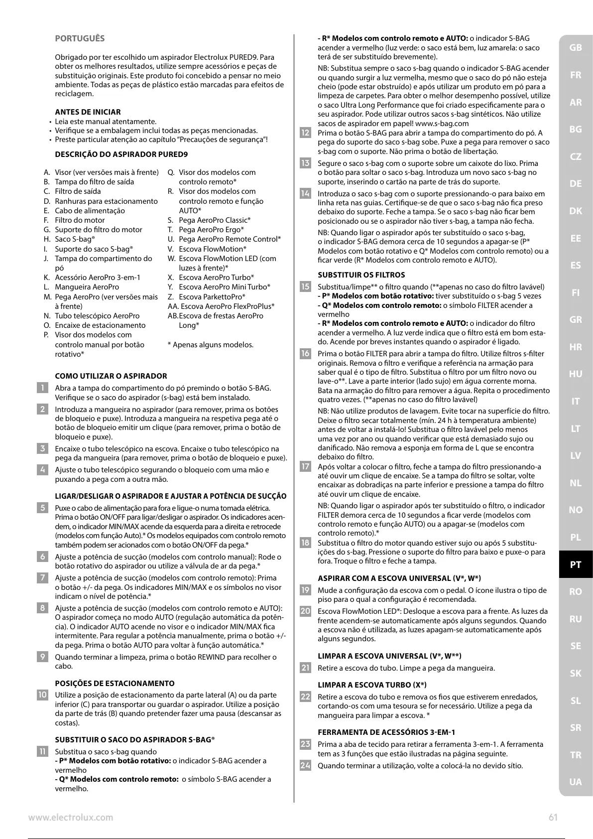 Obrigado por ter escolhido um aspirador Electrolux PURED9. Para