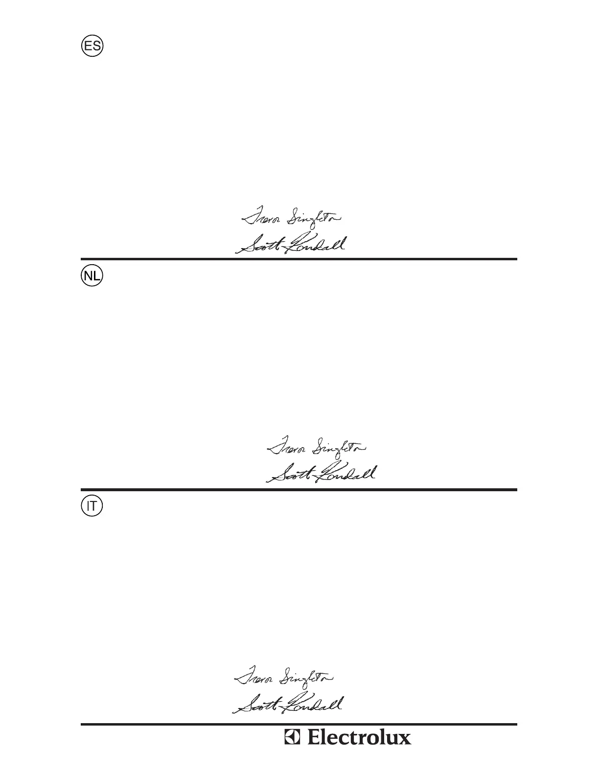 Emesso a: Electrolux Home Products Nome del fi rmatario: