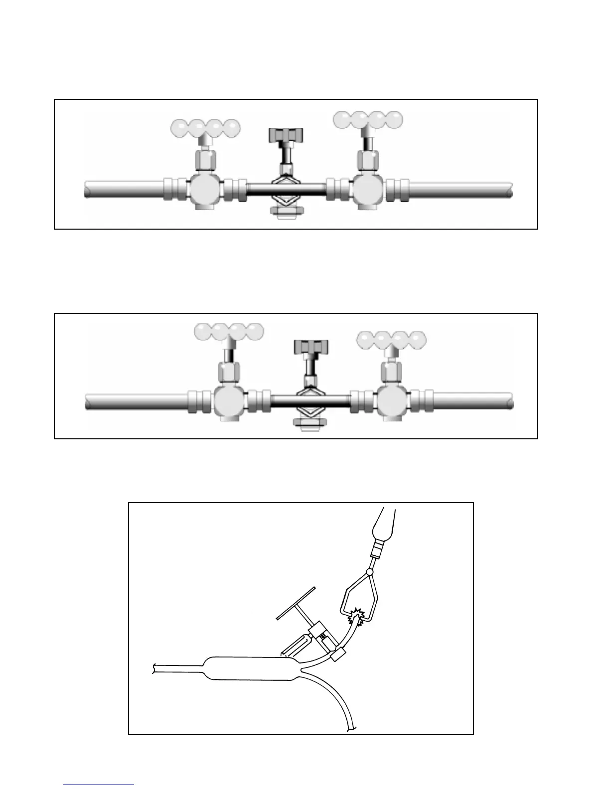 Step 3. Leave valve A closed and valve C open. System compressor still running,