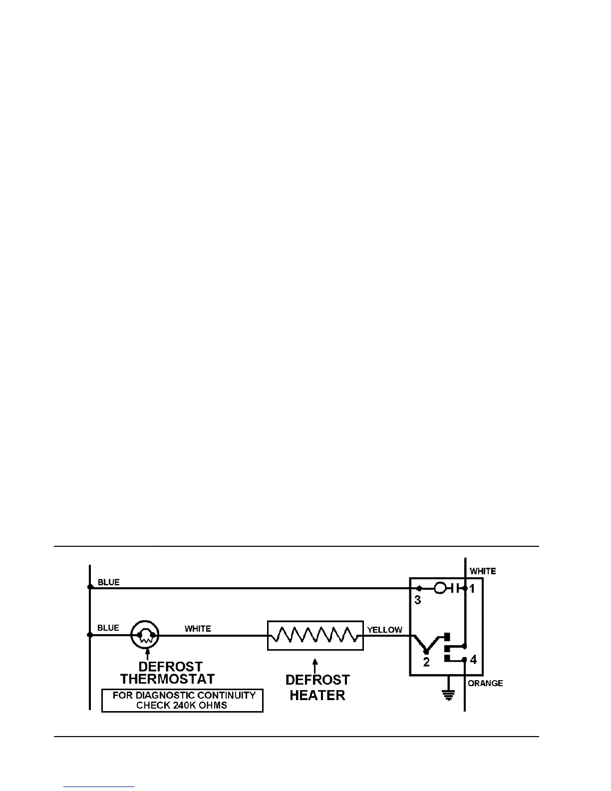 to 40 ohms, the defrost heater and thermo-
