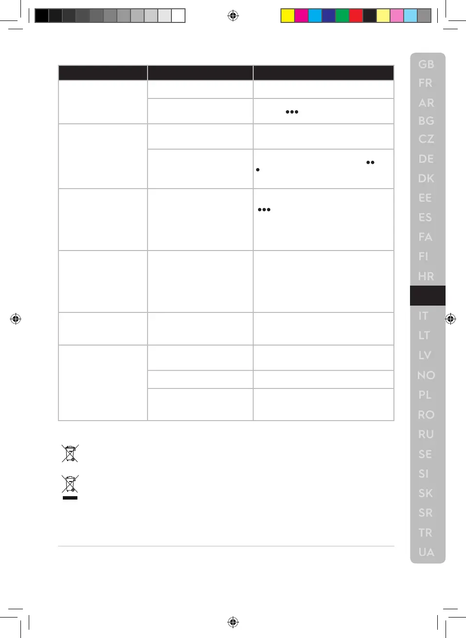 Ez aszimbólum azt jelzi, hogy a készülékben akkumulátor van, ami nem helyezhető a háztartási hulladék