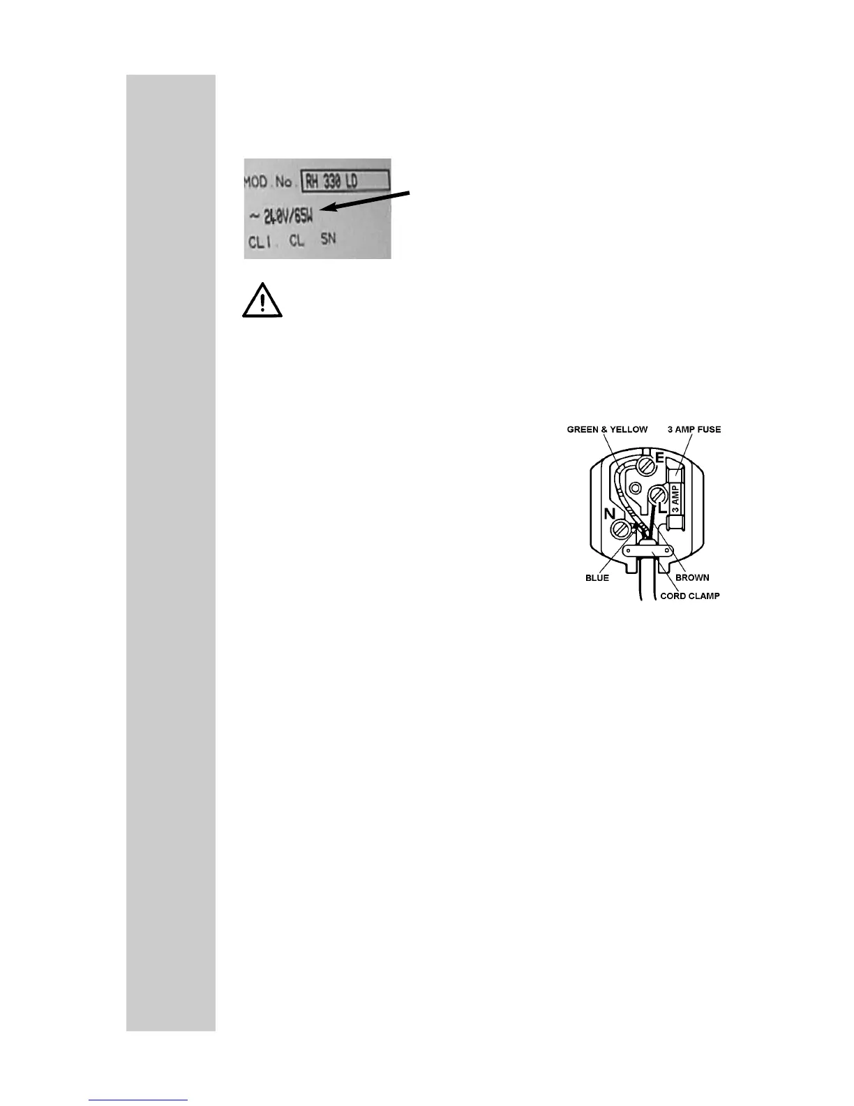 If a 3-pin plug is used, it should be fitted with a 3 amp fuse,