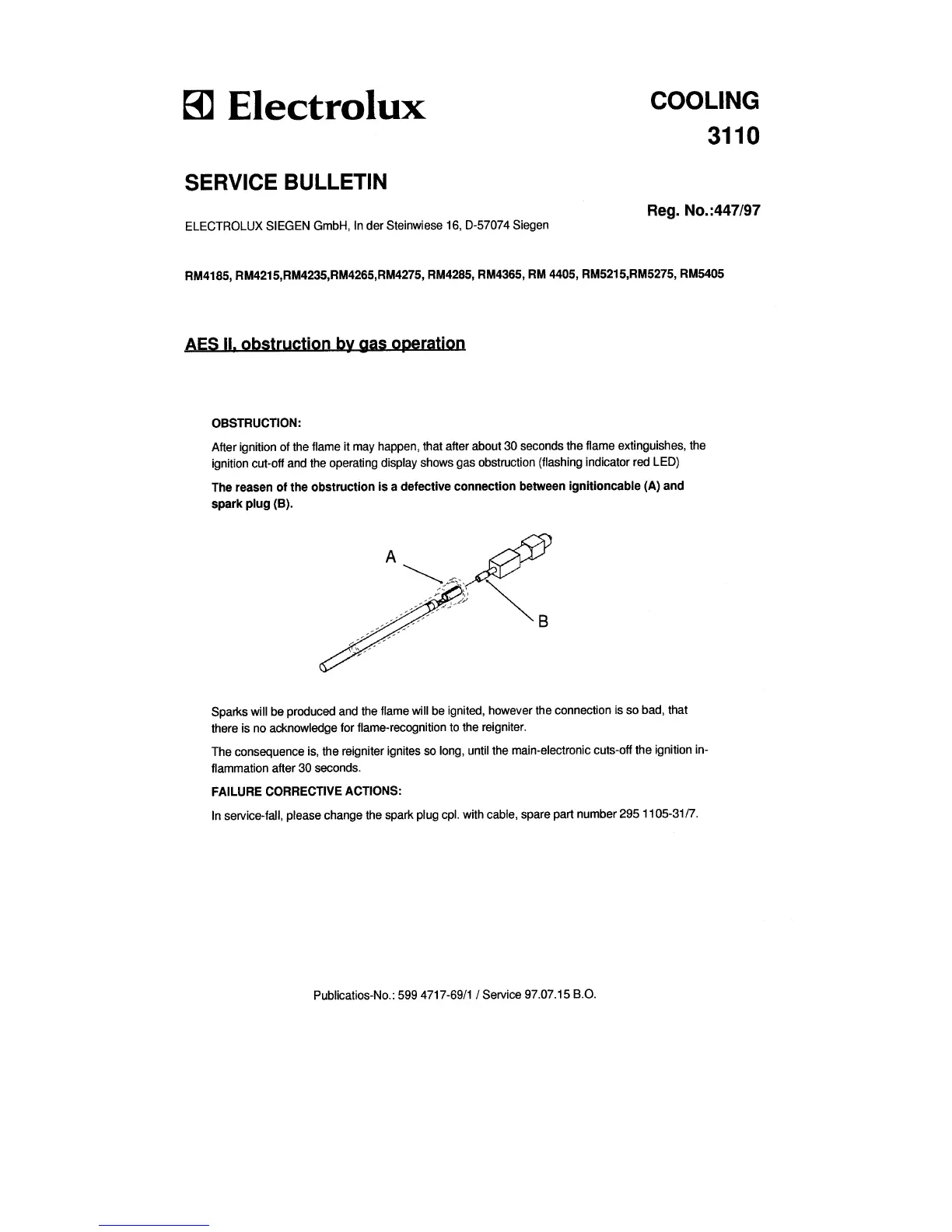 Electrolux RM 4605 - AES II, Obstruction by Gas Operation