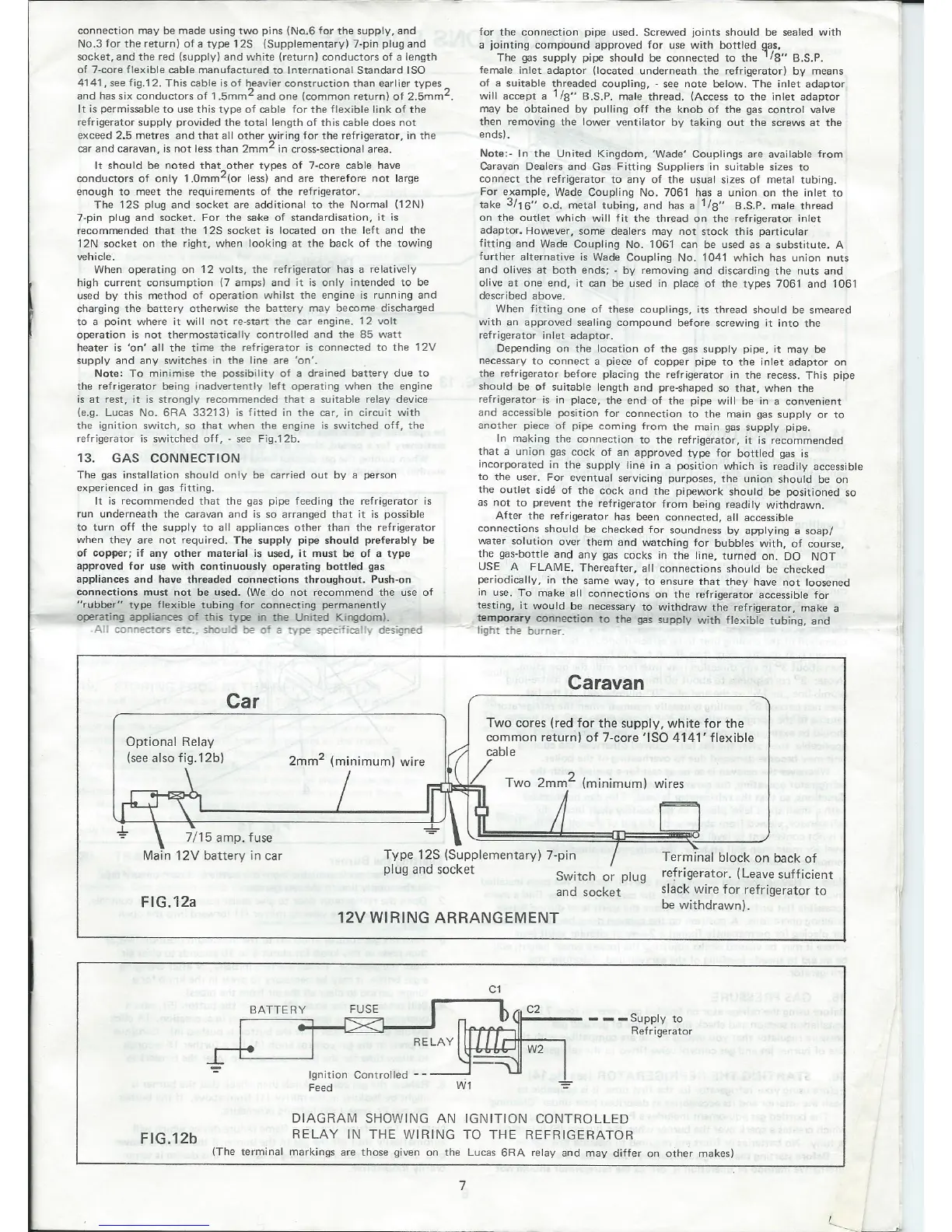 Electrolux RM122 - Gas Connection; 12 V Wiring Arrangement; Diagram