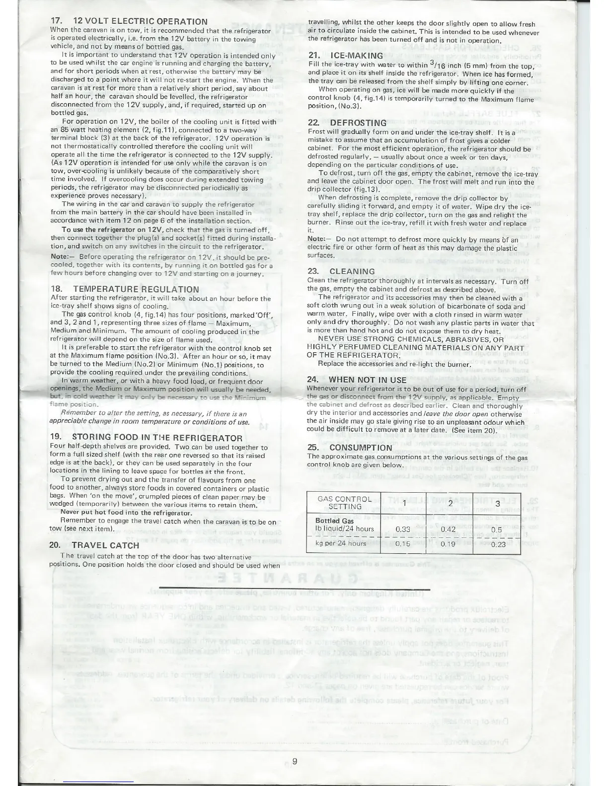 Electrolux RM122 - Temperature Control and Food Storage; Defrosting, Cleaning, and Storage