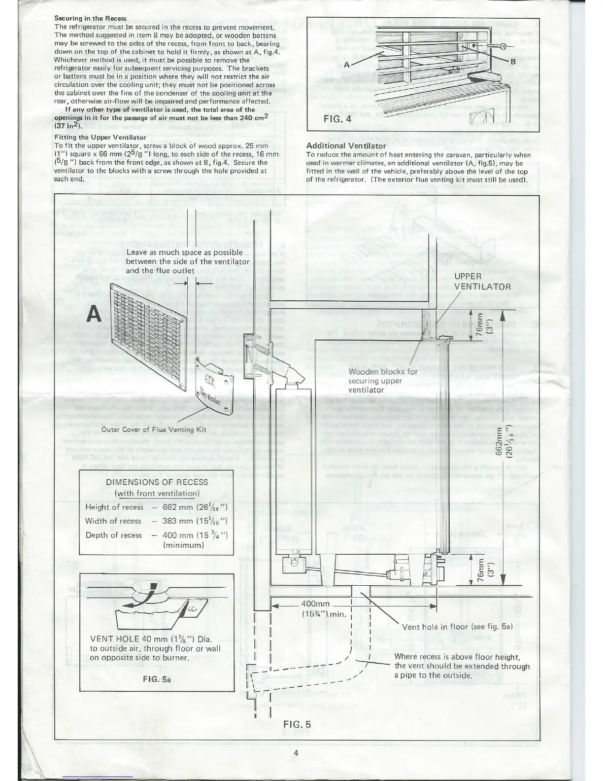 Electrolux RM122B - Securing in the Recess; Fitting the Upper Ventilator; Additional Ventilator; Dimensions
