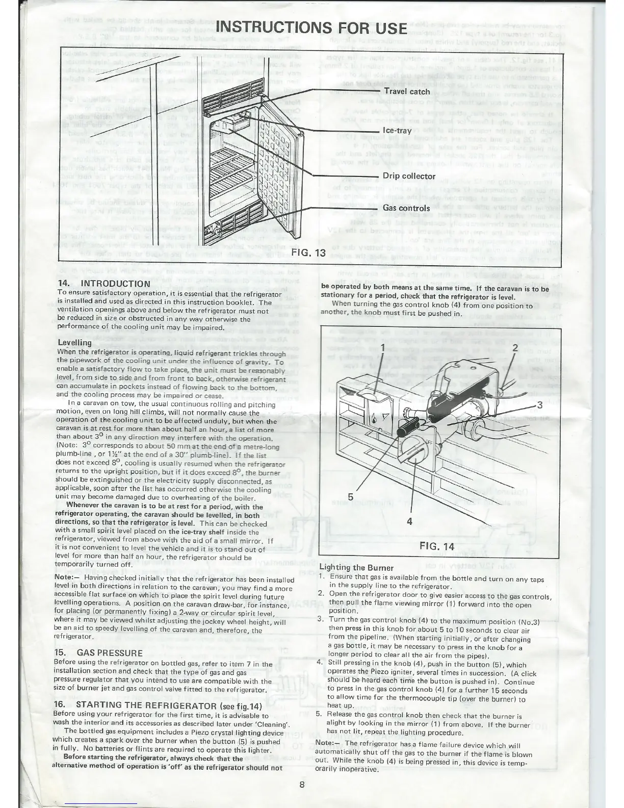 Electrolux RM122B - Instructions for Use; Starting the Refrigerator