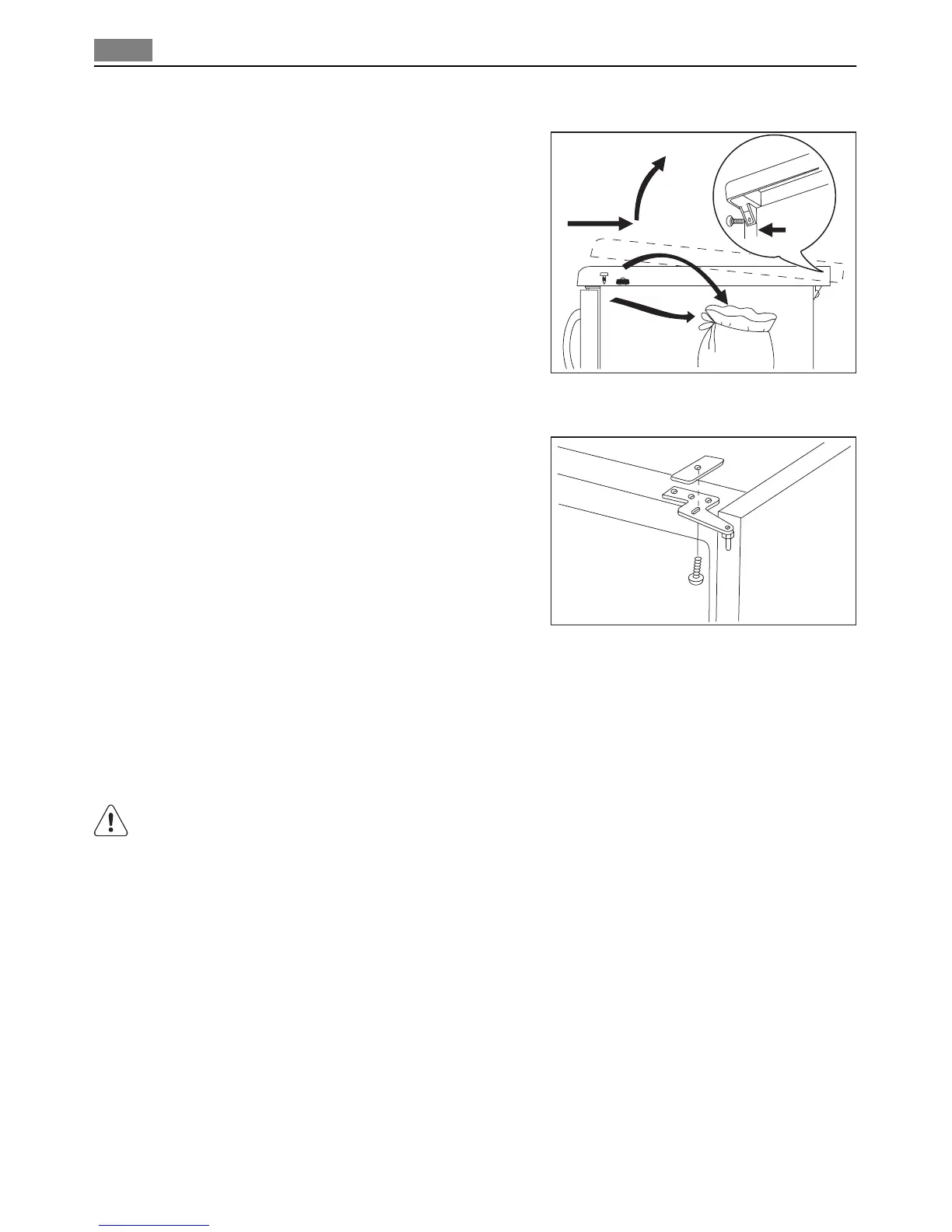 the appliance under the worktop through the upper door hinge. If necessary, equalise the