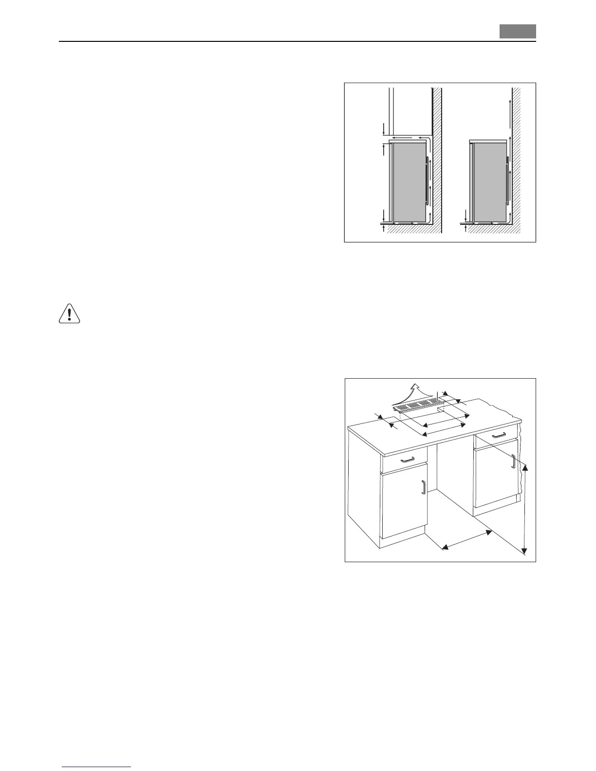 tre le haut de l'appareil et l'élément suspendu doit