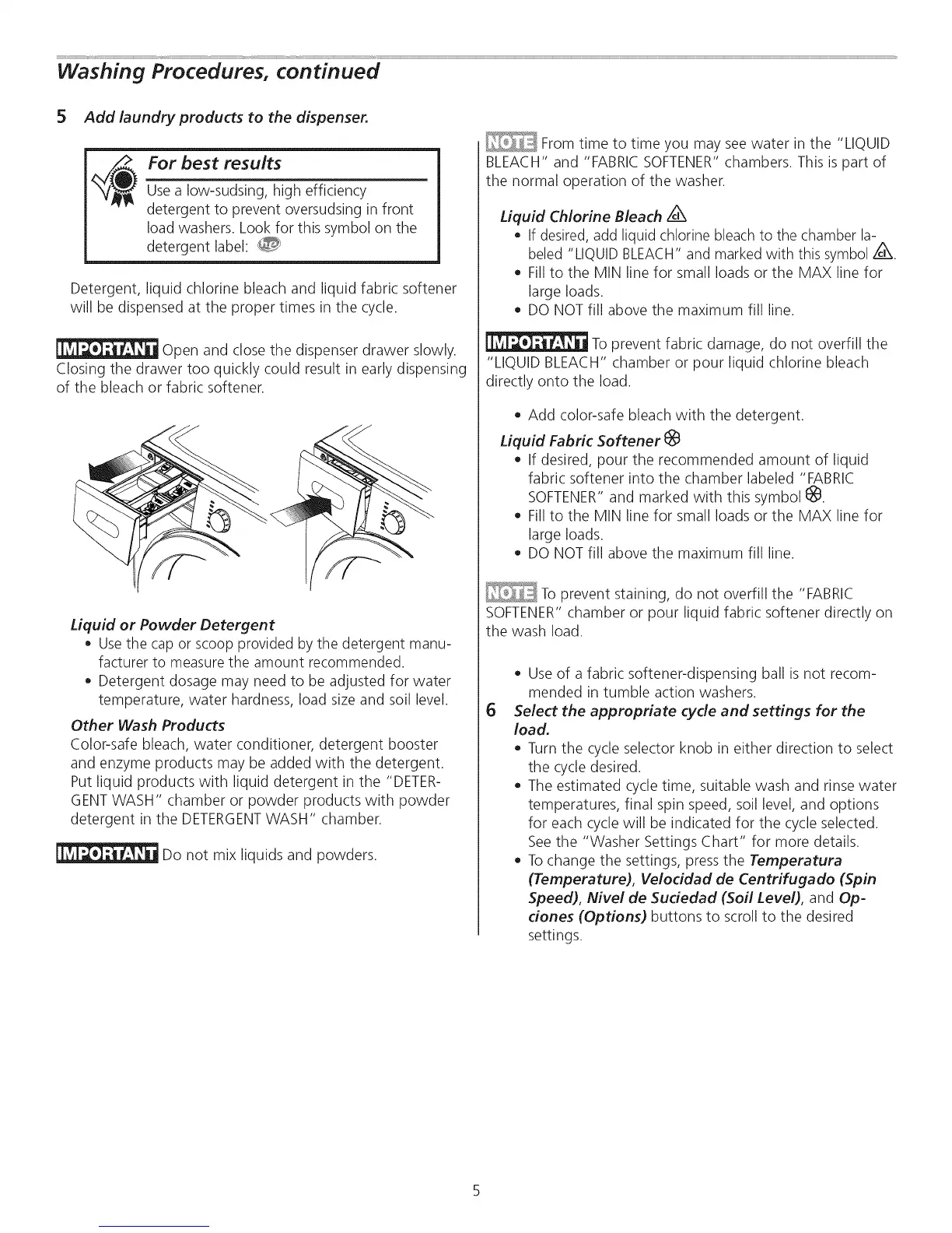 SOFTENER"chamber or pour liquid fabric softener directly on