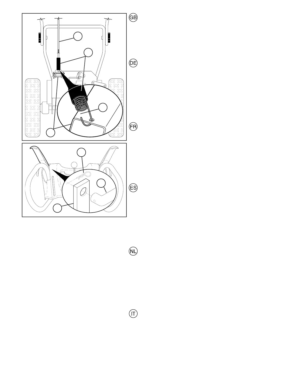 Die Feder am Fahrantriebssteuerhebel (A) ist mit einem langen Haken am