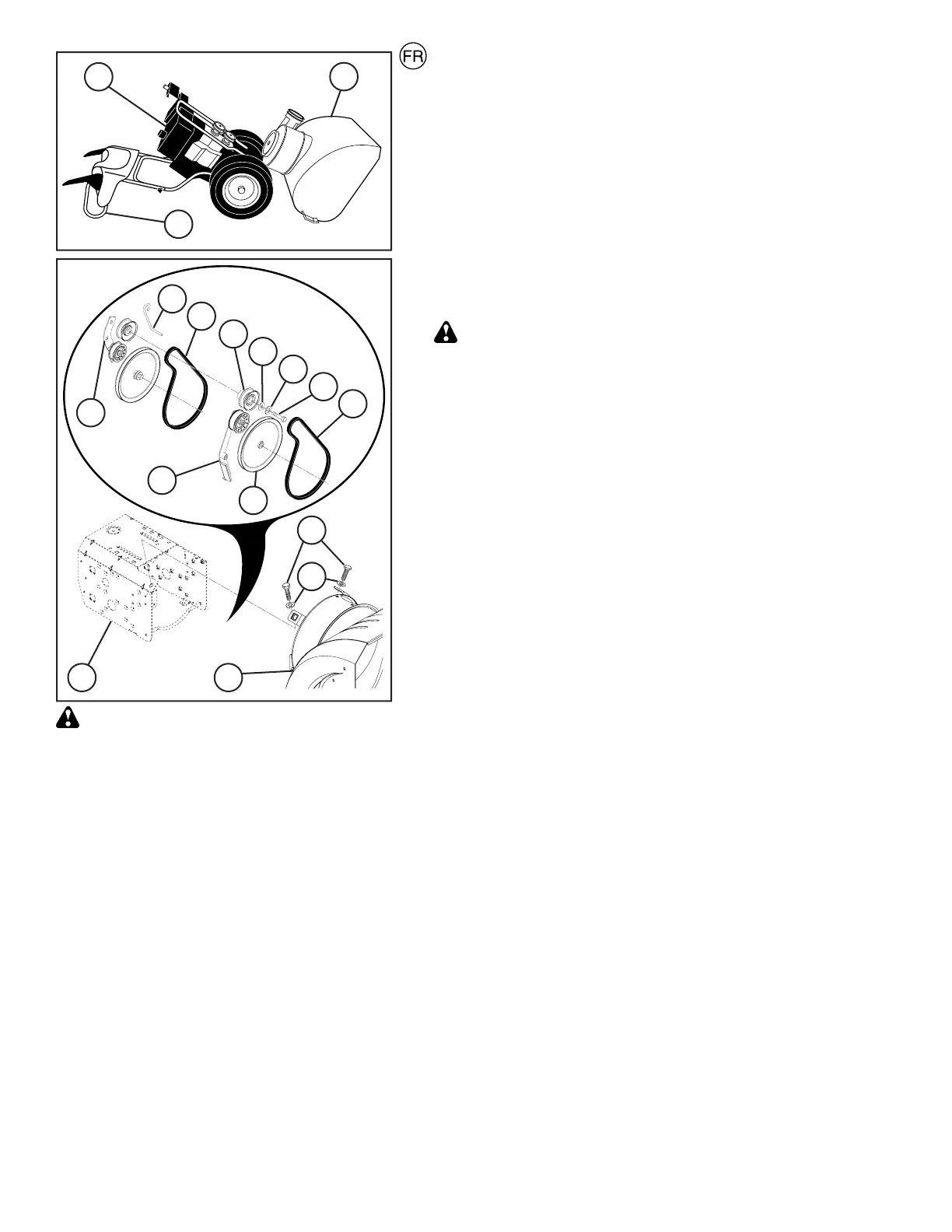 11. Remonter complètement la souffl euse et vérifi ez soigneusement l’acheminement des courroies. Si la courroie de la vis sans fi n