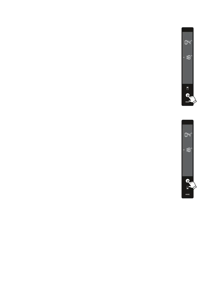 • Appuyer une fois sur la touche de réglage du congélateur.
