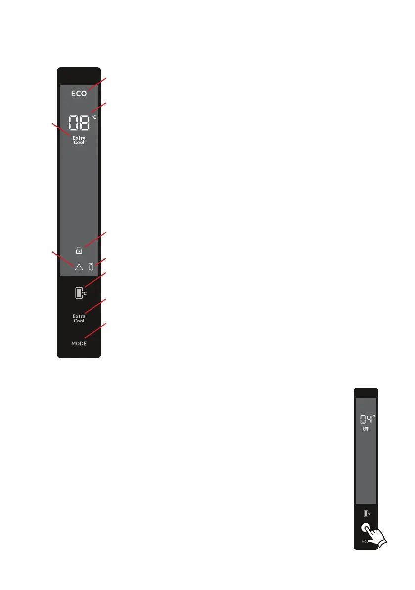 1- Temperatureinstellungsanzeige des Gefrierbereichs