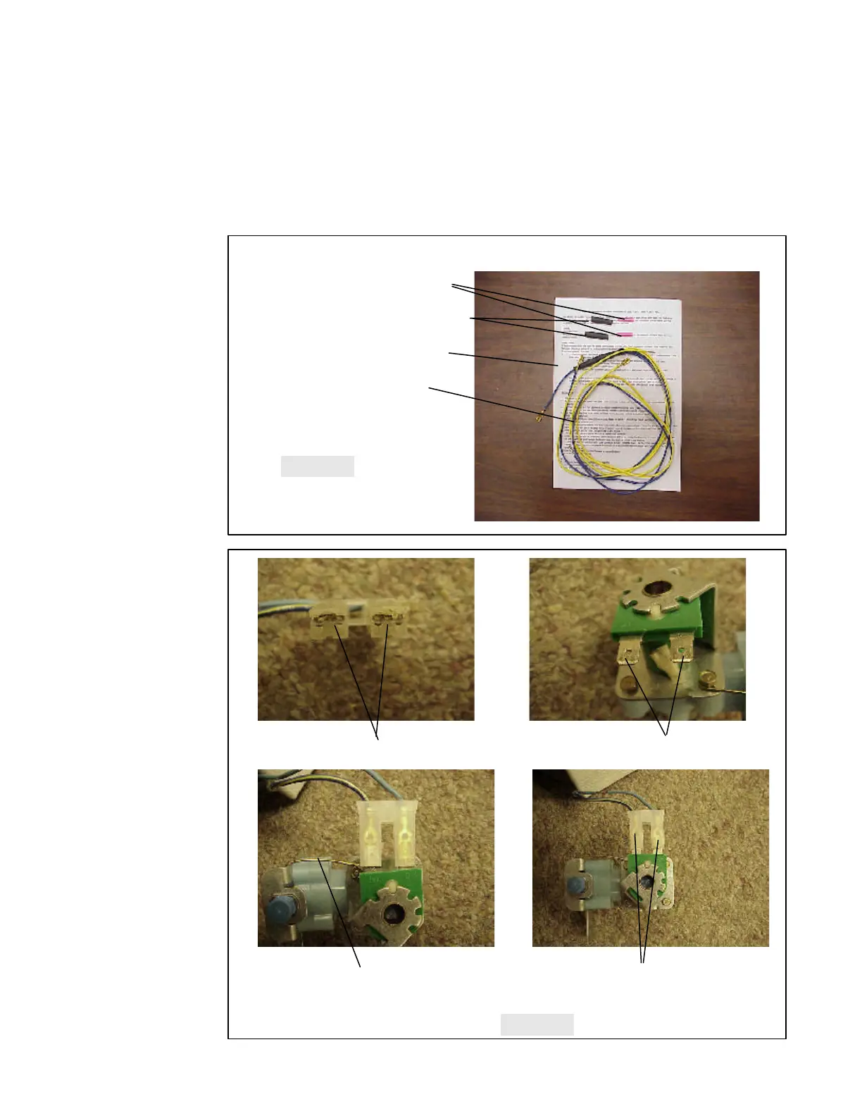 Coil(s) connections in the wiring of a refrigerator. On the ice maker, the wiring runs through the plug,