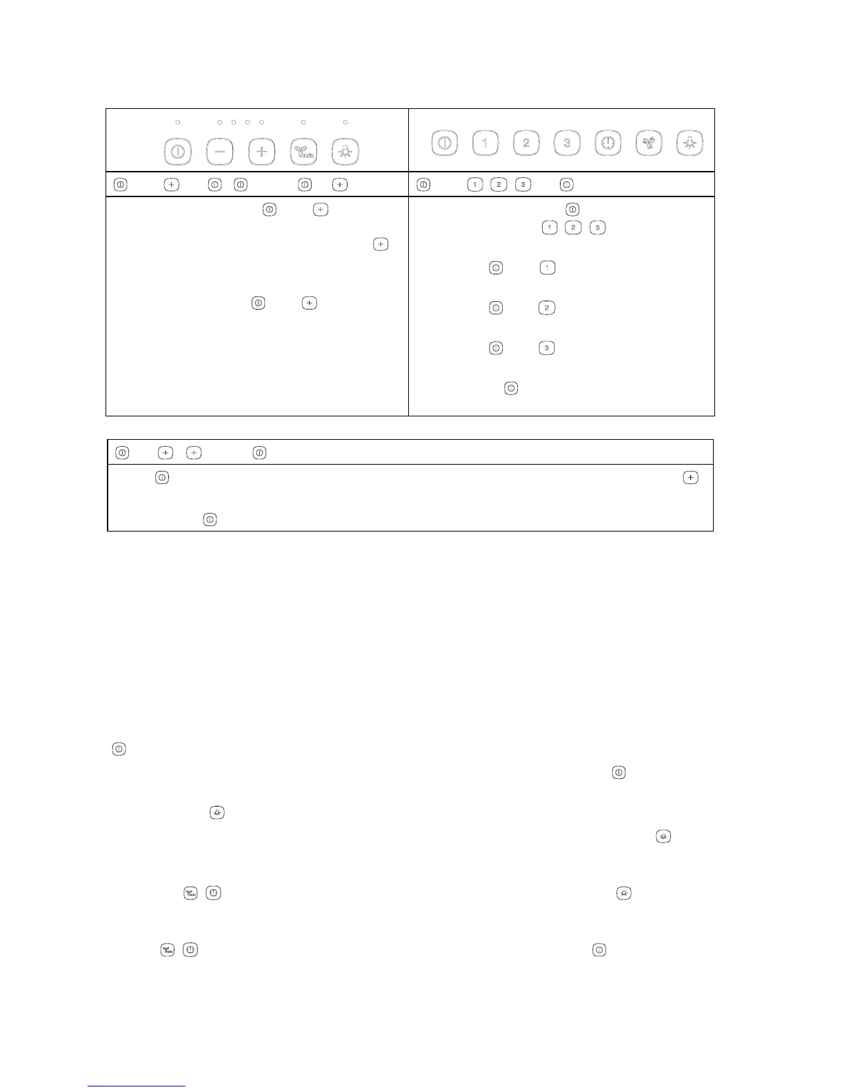 Einstellung für Abluftbetrieb: Motor und Beleuchtung ausschalten. 5 Sekunden gemeinsam die