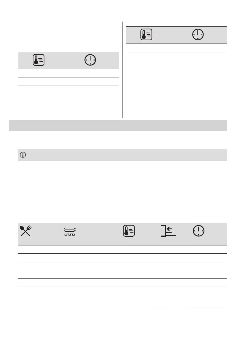 The temperature and cooking times in the tables are guidelines only. They depend on the recipes and the quality