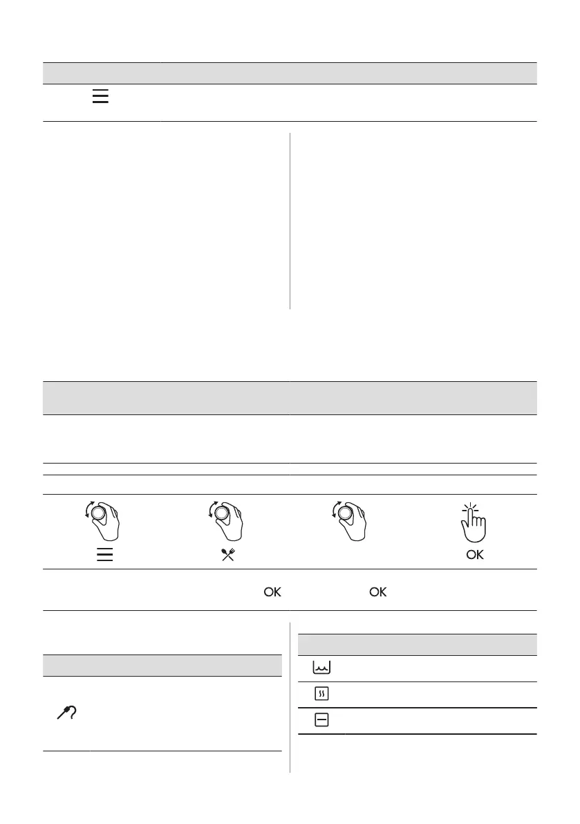 За да влезете во менито: Готвење со помош, Чистење, Нагодувања.
