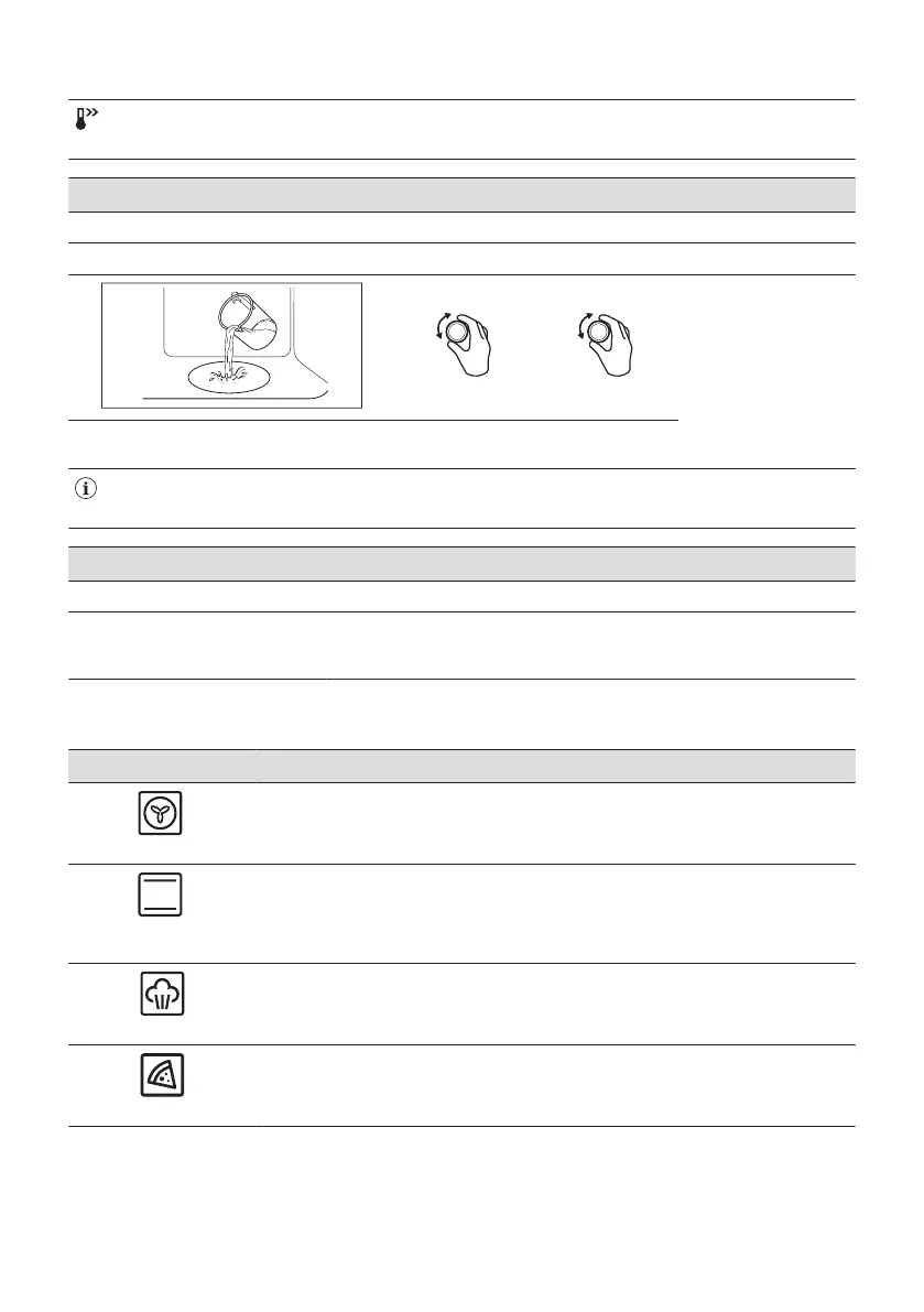 Максимальная емкость выемки для камеры духового шкафа составляет 250 мл. Не наполняйте выемку