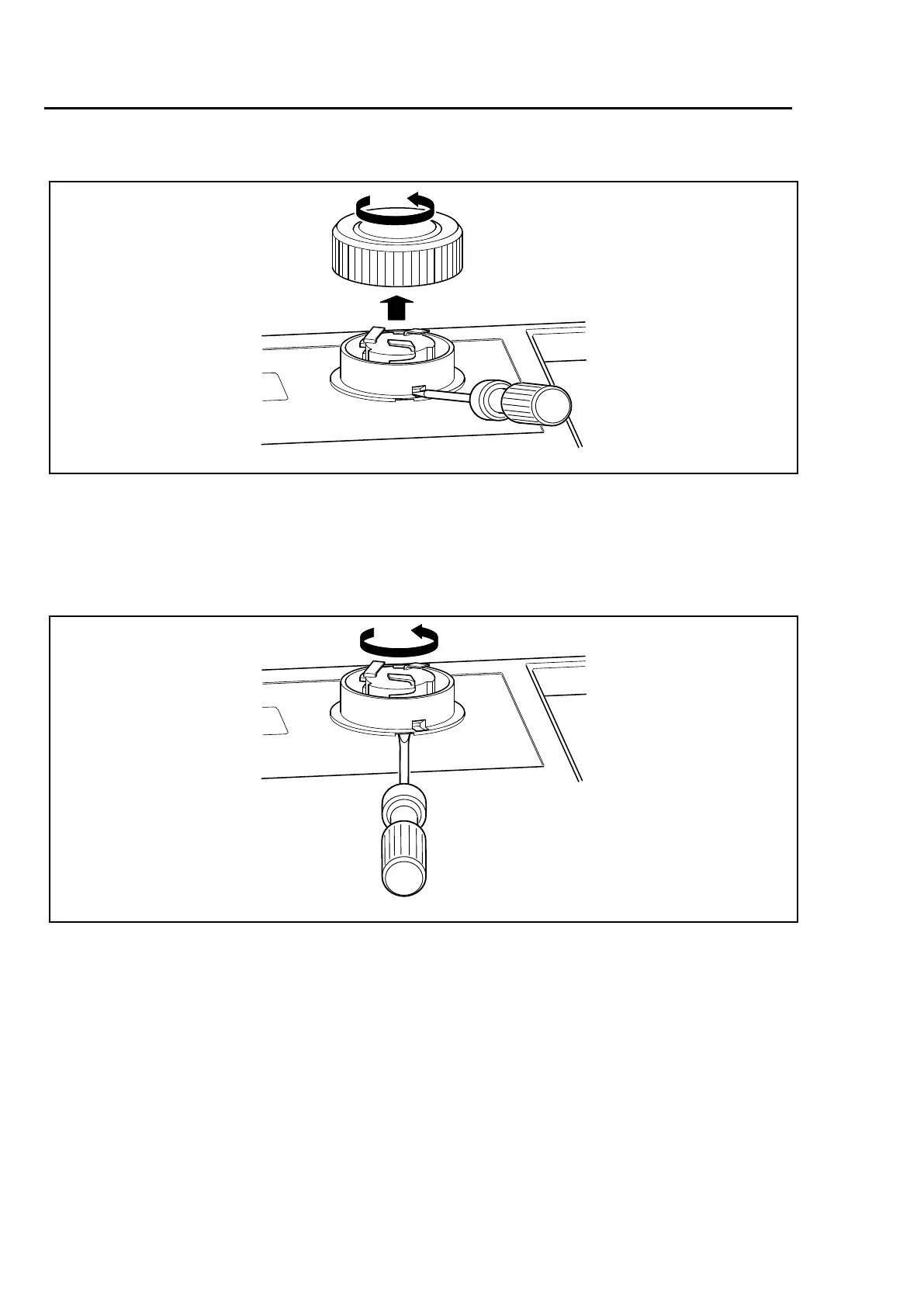 Whenthecontrolknobisremoved,insertthescrewdriverinthelowerholeandpressgently.Turn