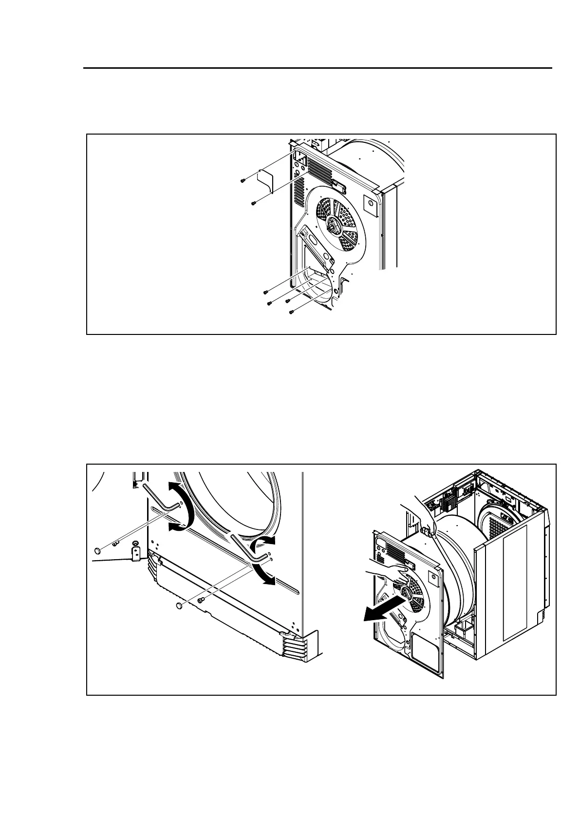 Atthefrontofthemachine:Openthedoorandremovethetwoplugs.Loosenthescrewscounter