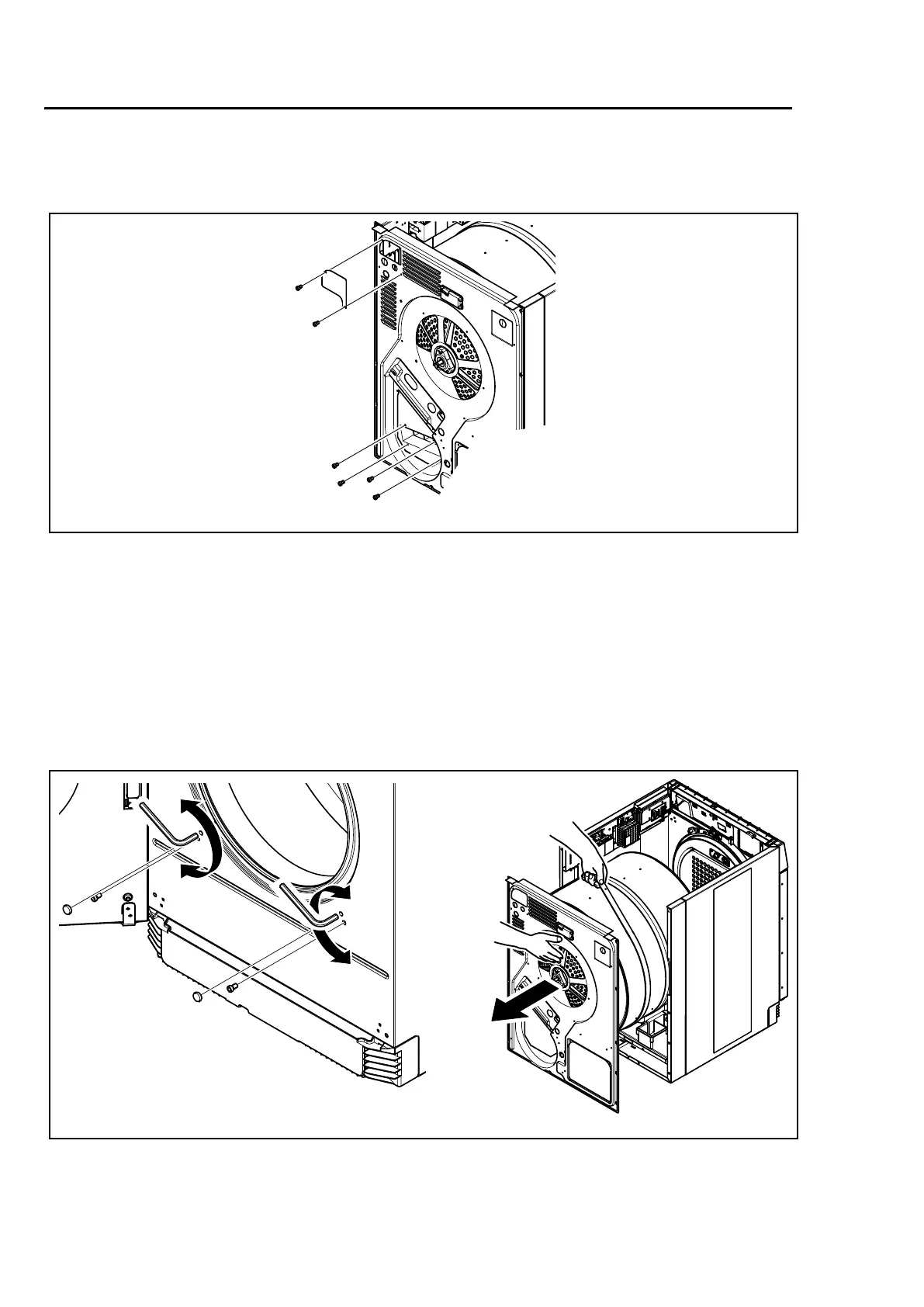 Atthefrontofthemachine:Openthedoorandremovethetwoplugs.Loosenthescrewscounter