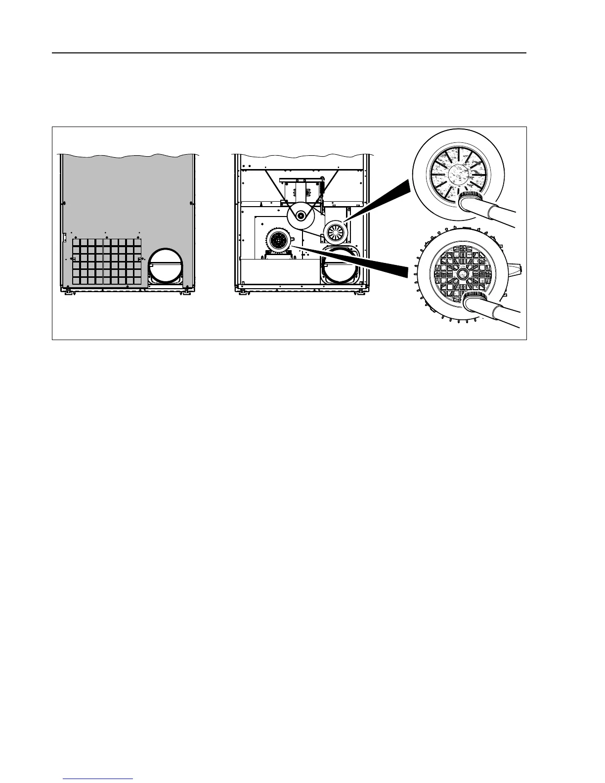 Clean the fan wheel and the motor (on machines with reversing) with a vacuum cleaner.