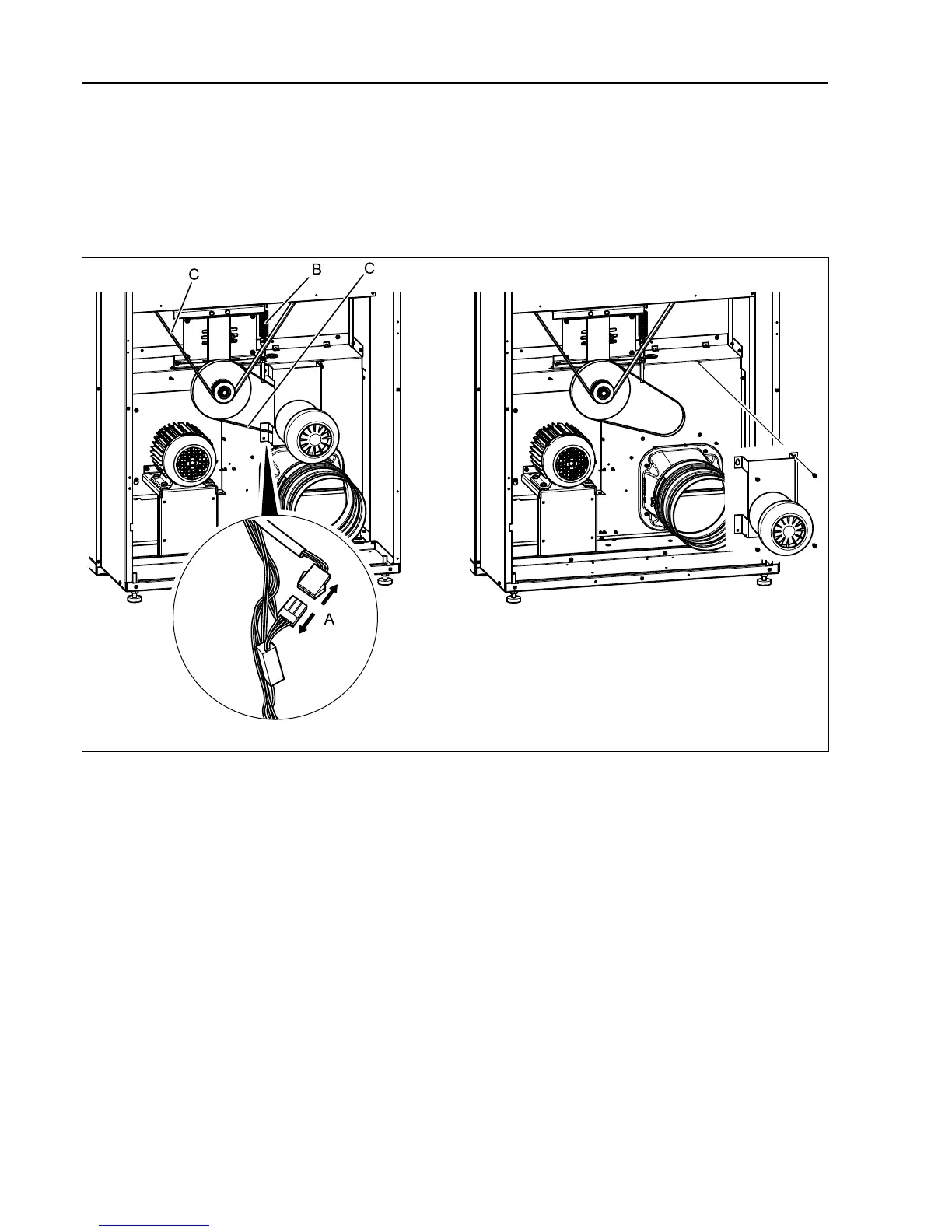 Loosen both of the belts (C).