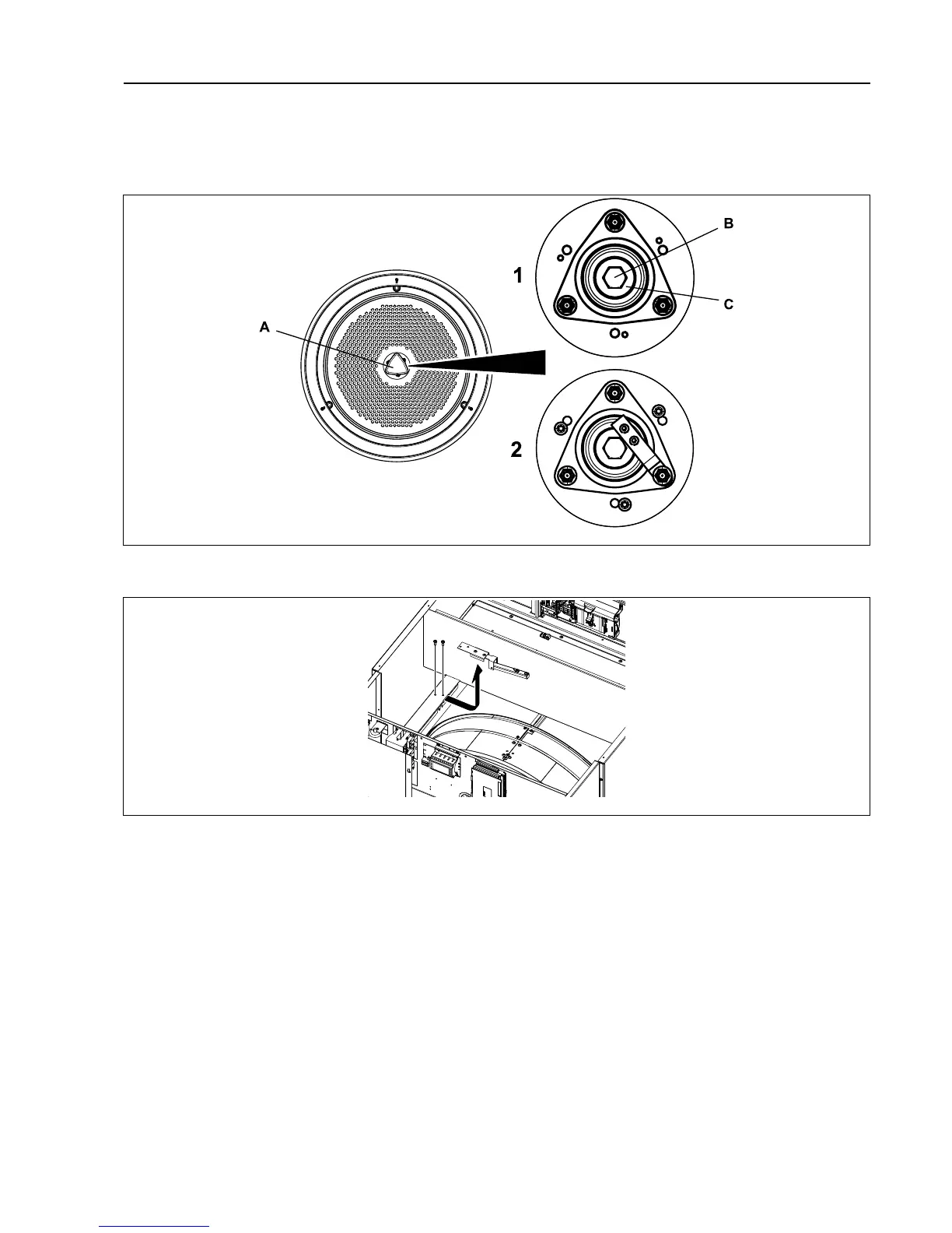 1. Shows a machine without RMC. Remove the bolt (B) and the washer (C).