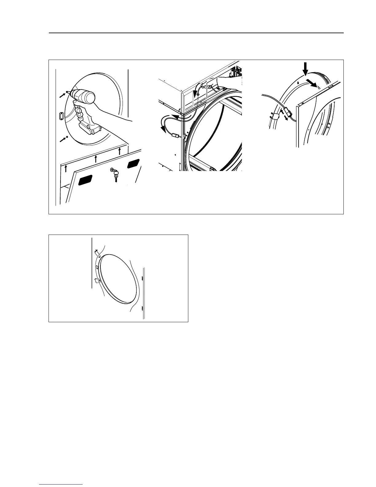 Remove the screws on the front panel and carefully loosen the panel. Push the door switch cable down through the