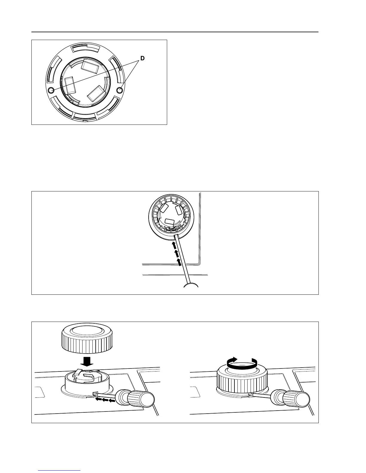 Mount the control knob on the inner knob. Continue to press with the screwdriver and turn the control knob clockwise