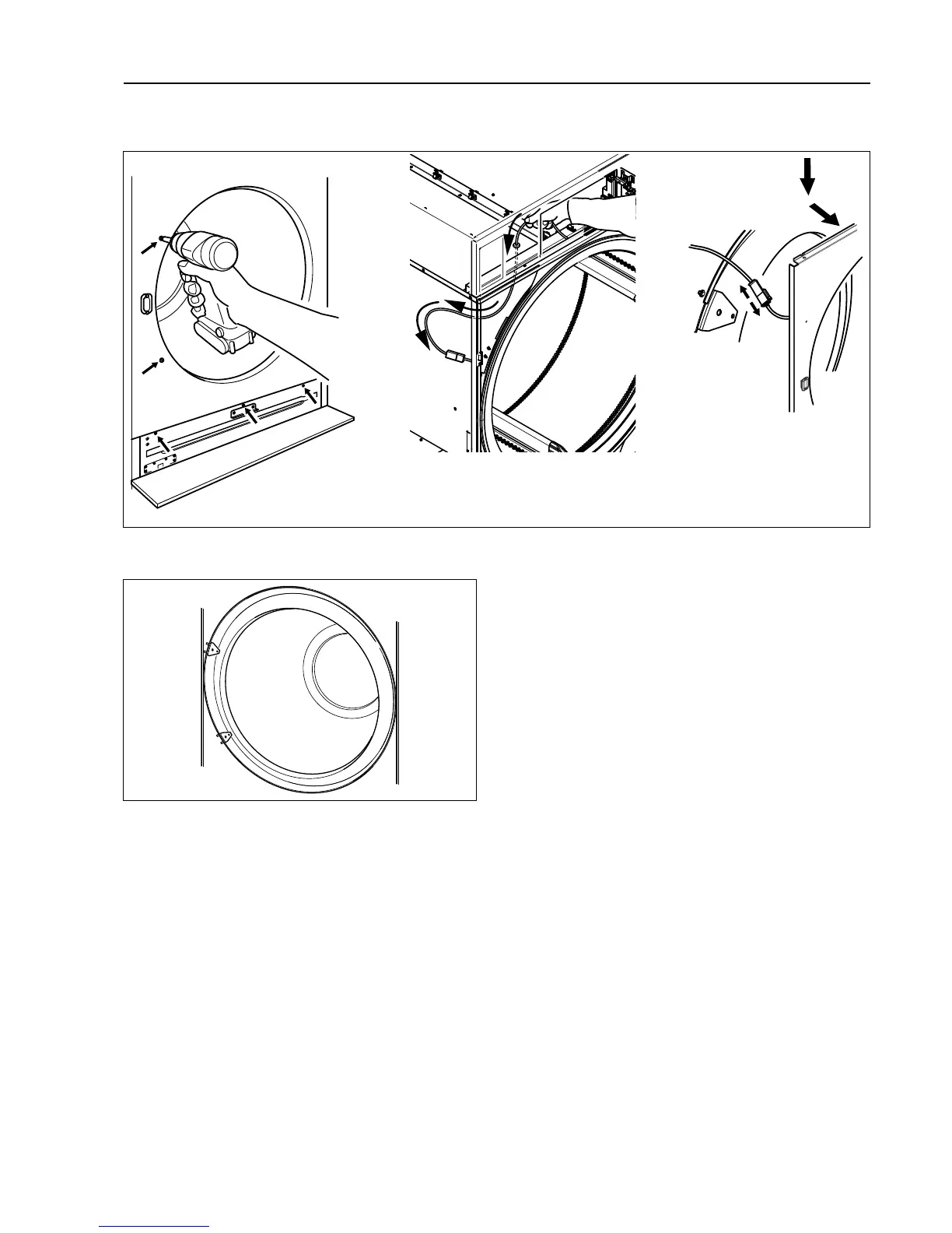 Remove the screws on the front panel and carefully loosen the panel. Push the door switch cable down through the