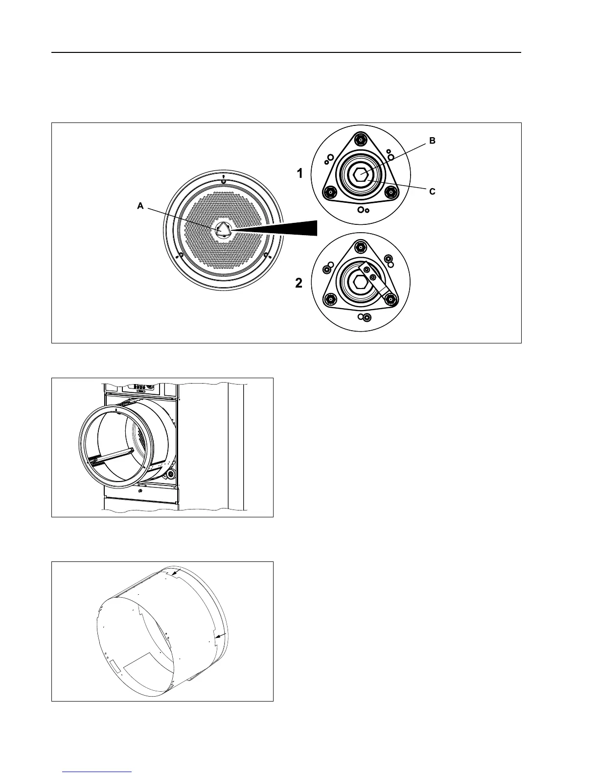 1. Shows a machine without RMC. Remove the bolt (B) and the washer (C).