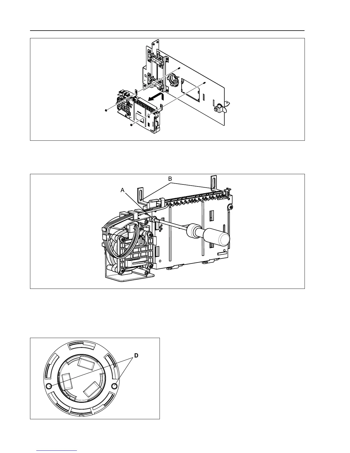Mount the control system CPU in upper position. Insert the control knob unit and make sure that the guide pins (D)