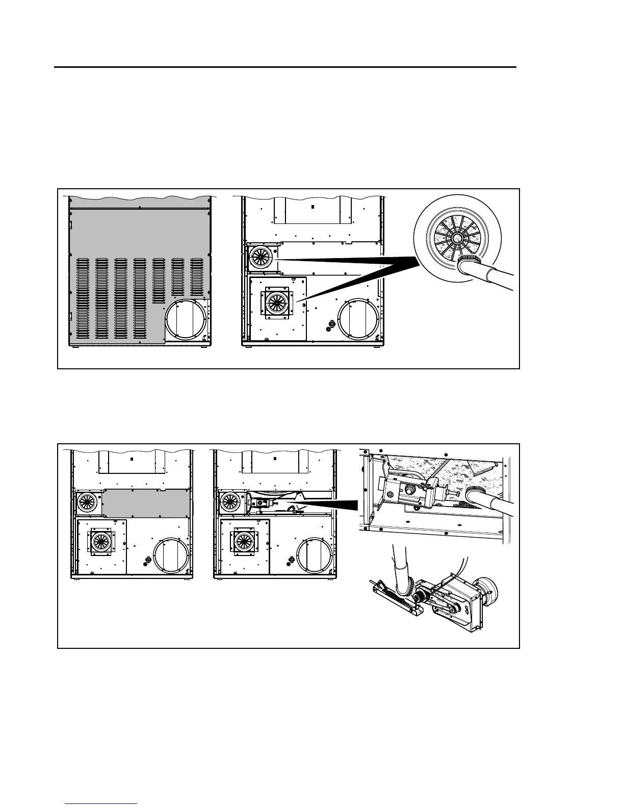 Cleanthefanwheeloneachmotorwithavacuumcleaner.