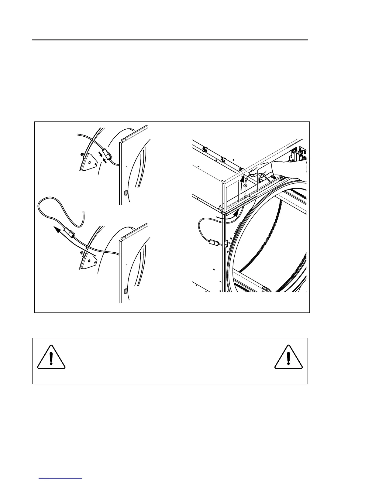 Connectthedoorswitchcableandpushthecableinoverthedrumandpullitupwards.