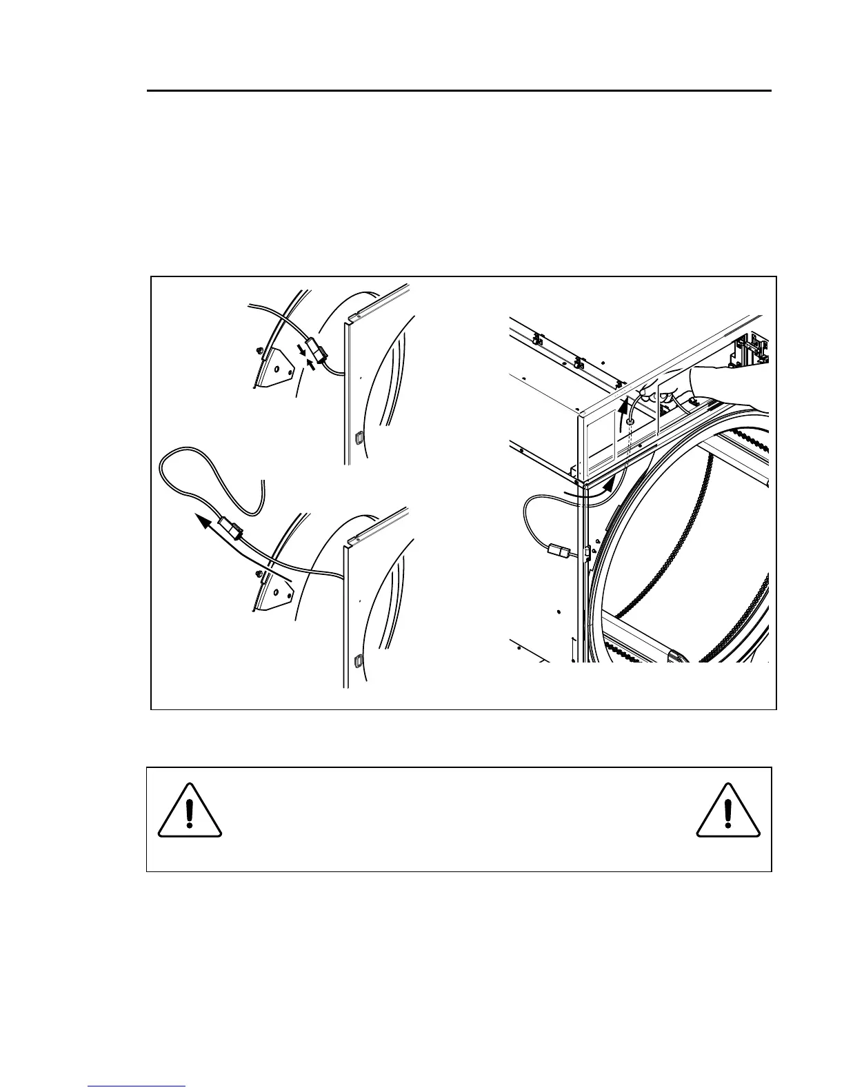 Connectthedoorswitchcableandpushthecableinoverthedrumandpullitupwards.