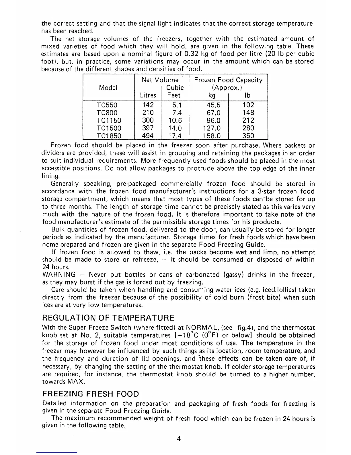 Electrolux TC1150 - Regulation of Temperature; Freezing Fresh Food