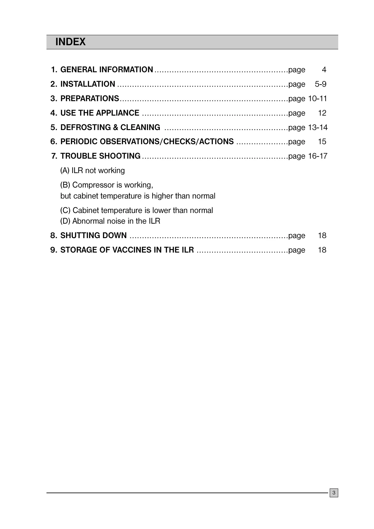 9. STORAGE OF VACCINES IN THE ILR .....................................page 18