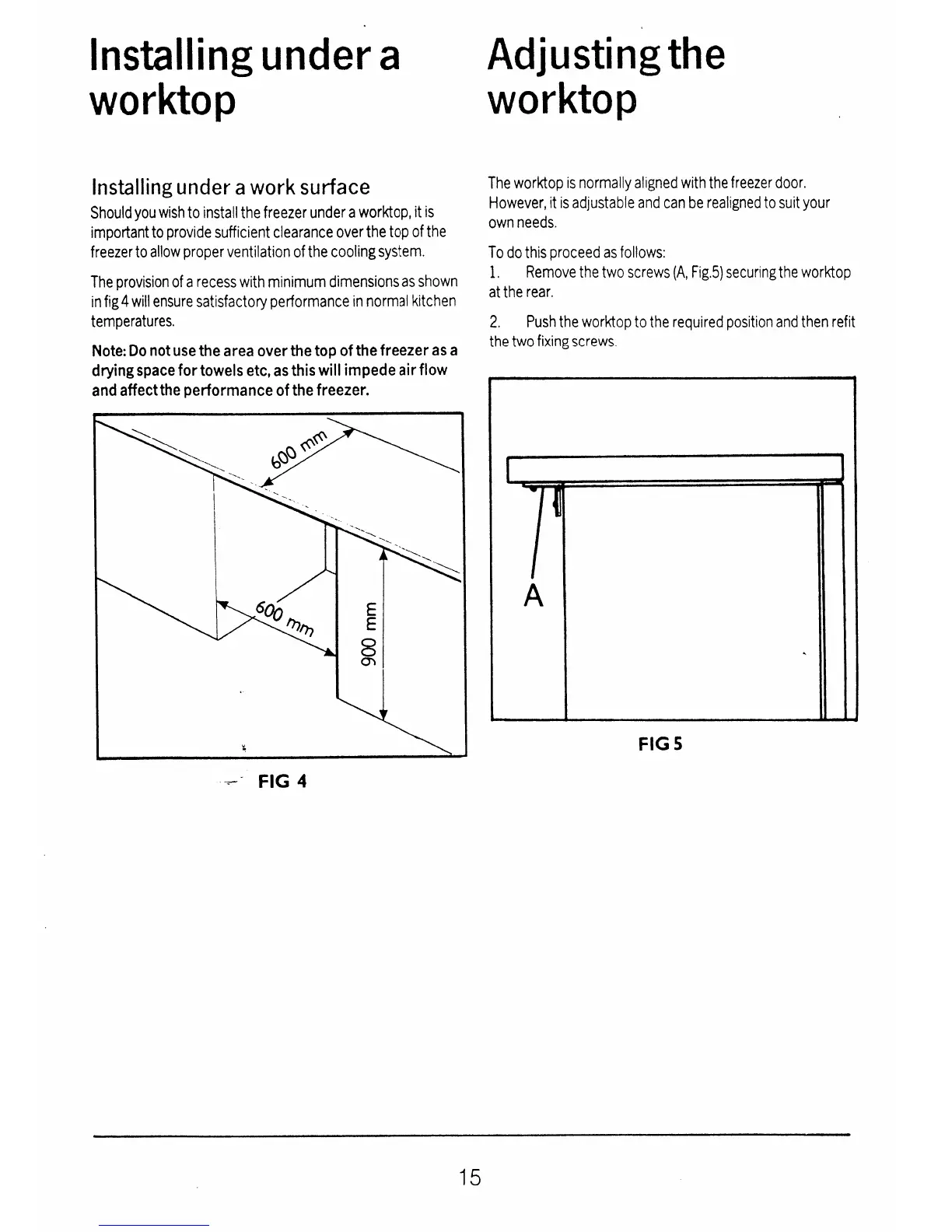 Electrolux TF422 - Installing under a Worktop; Adjusting the Worktop; Installing under a Work Surface