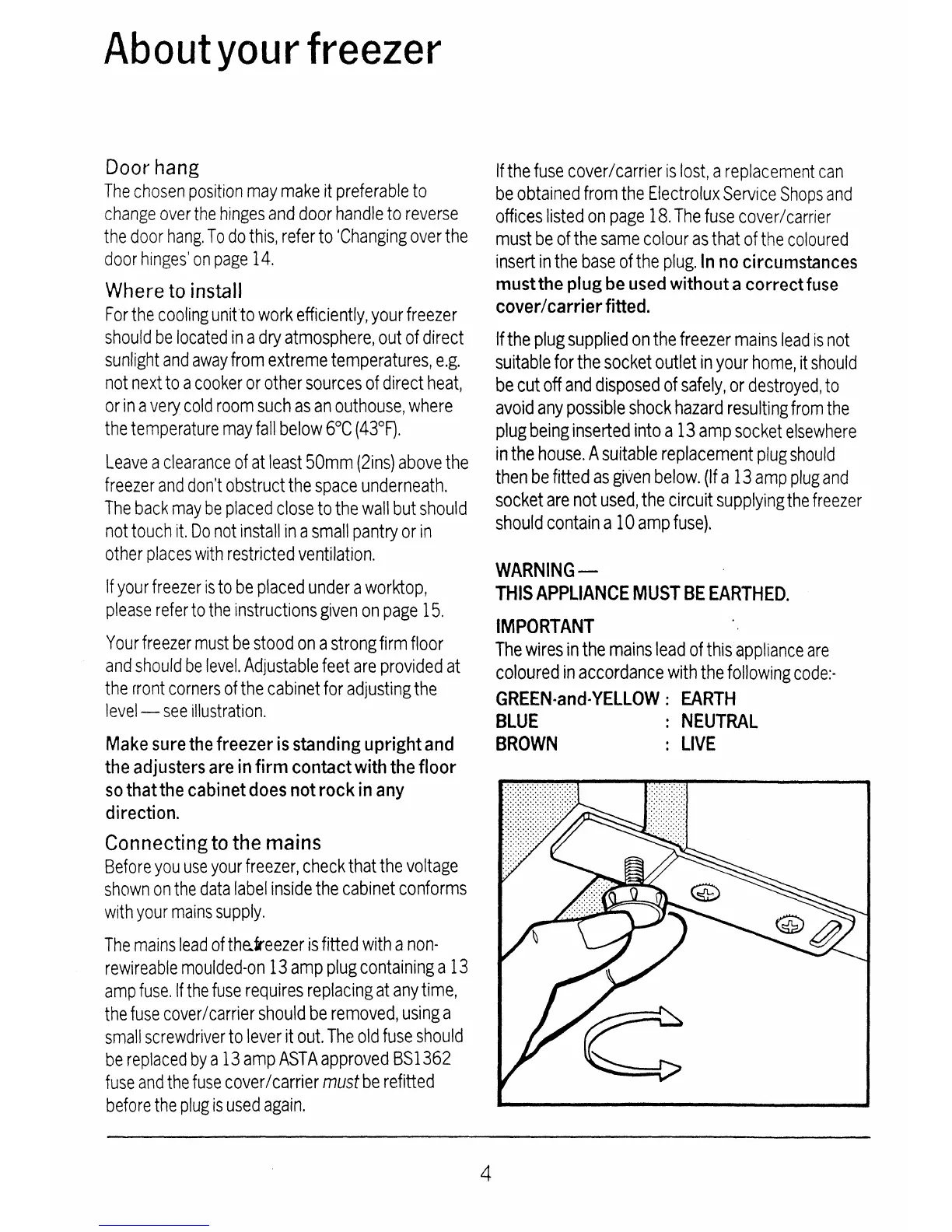 Electrolux TF422 - About Your Freezer; Door Hang; Where to Install; Connecting to the Mains