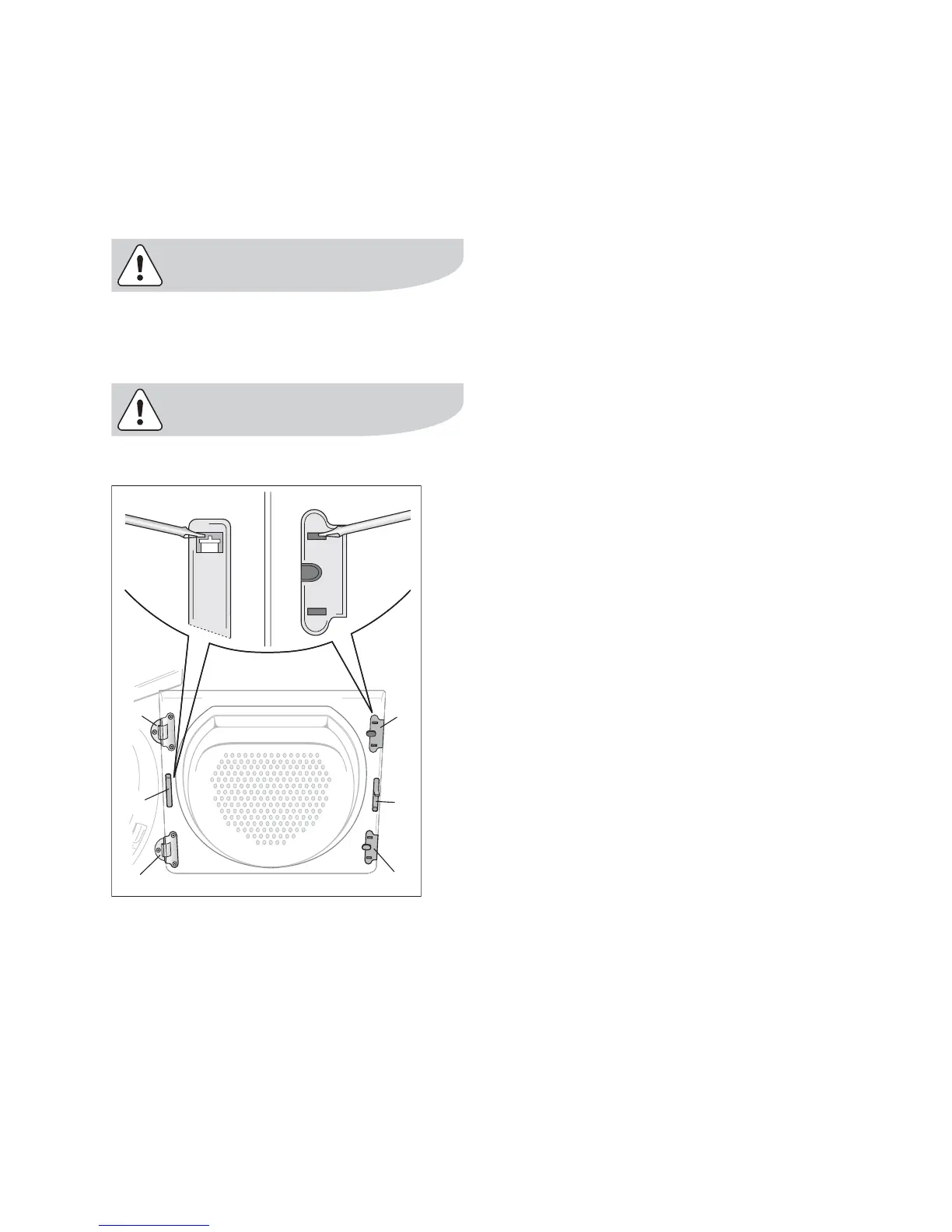 Unscrew hinge A from the front of the machine and take off the loading door.