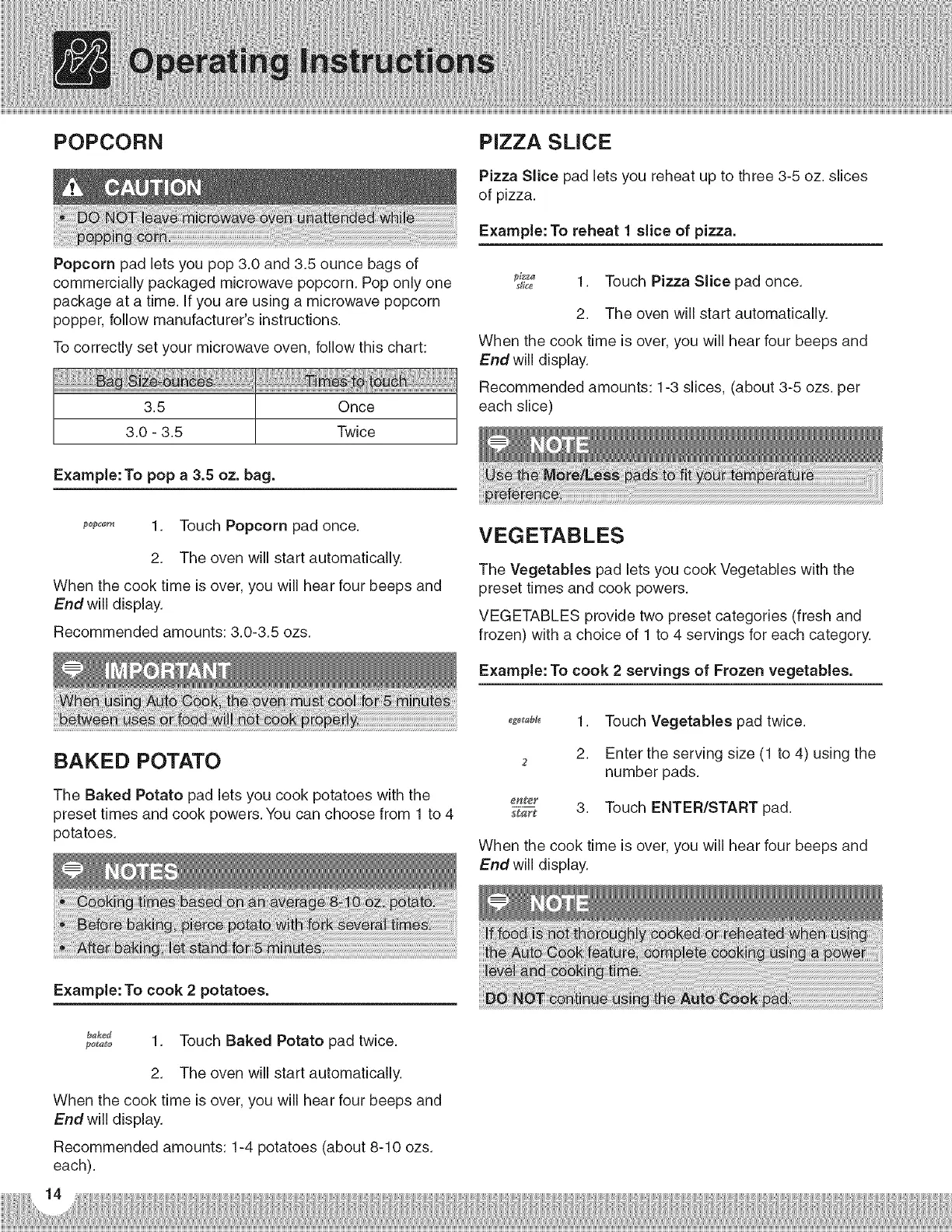 preset times and cook powers.