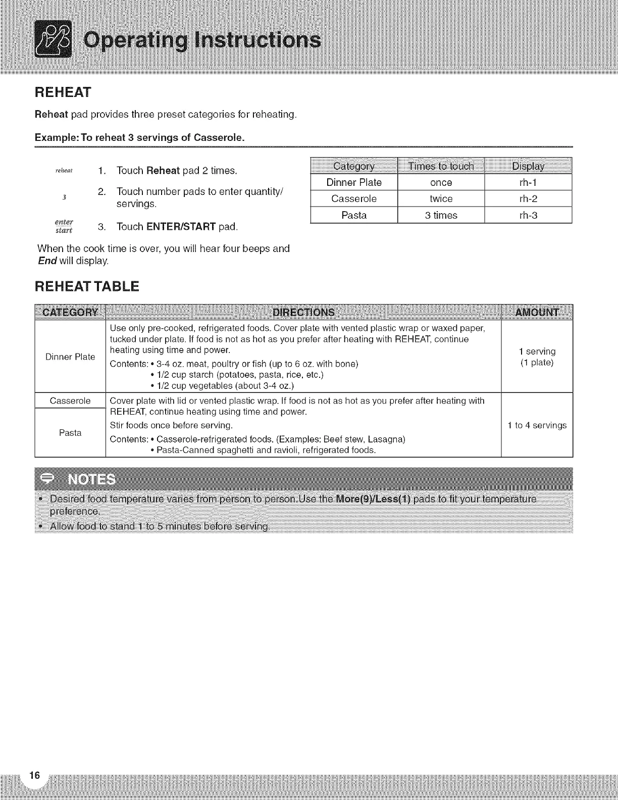 tucked under plate. If food is not as hot as you prefer after heating with REHEAT, continue