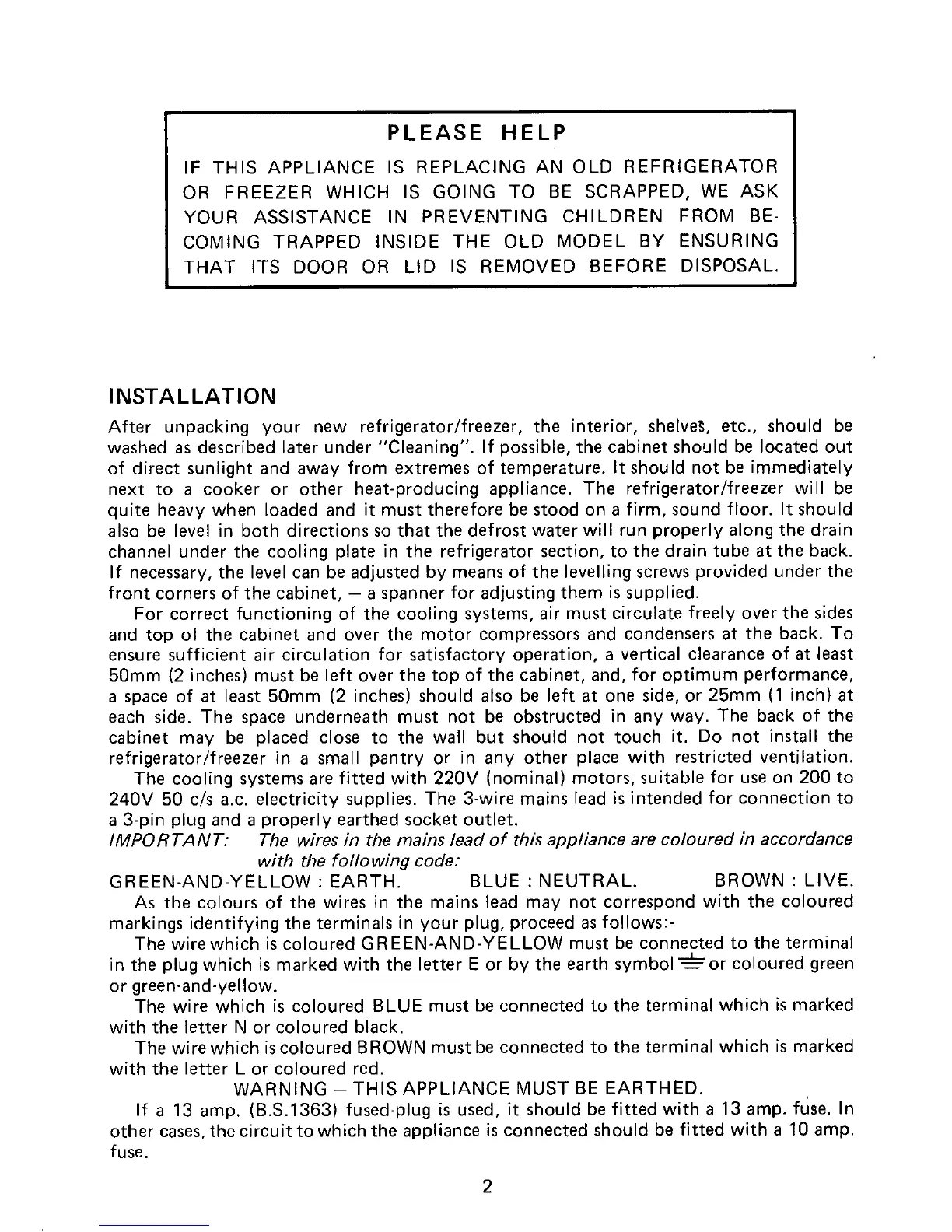 Electrolux TR1240 - Installation and Electrical Safety; Appliance Installation Guidelines; Mains Lead Wiring; Earthing Requirement