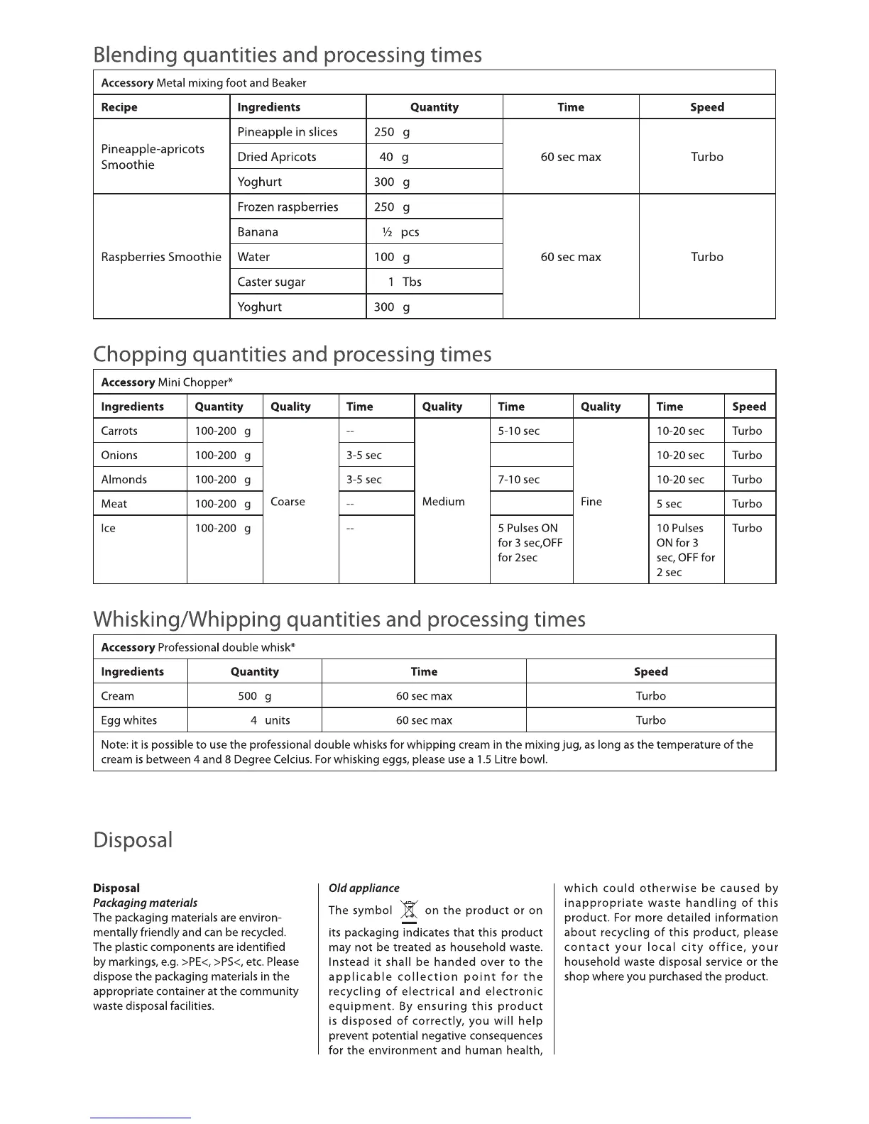 Whisking/Whipping quantities and processing times