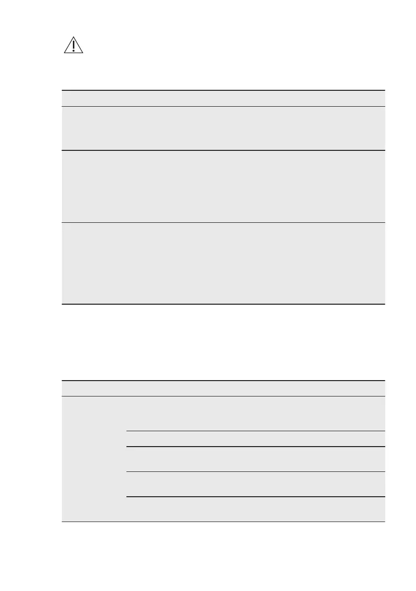 In case of different problem with the tumble dryer check the table below for possible